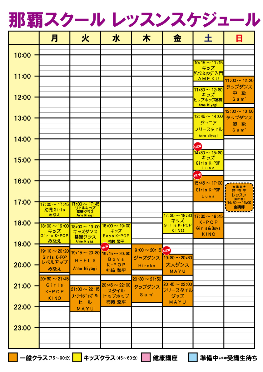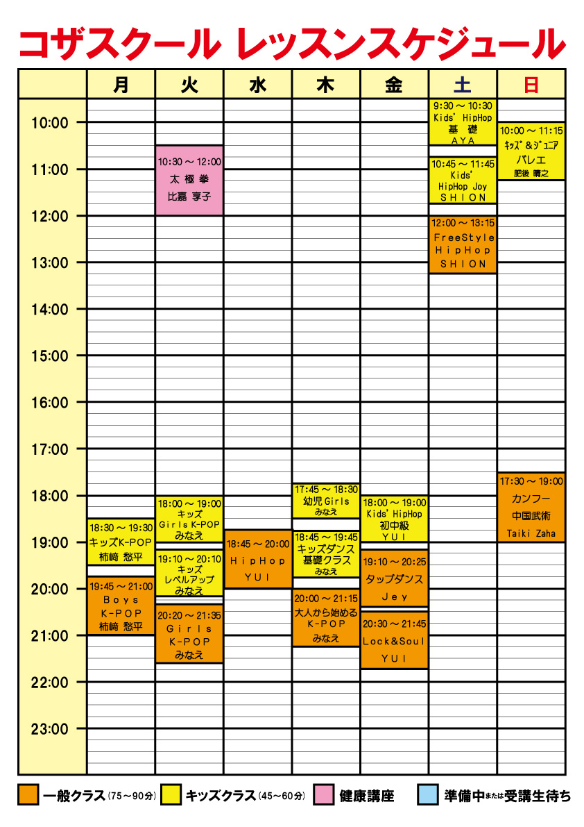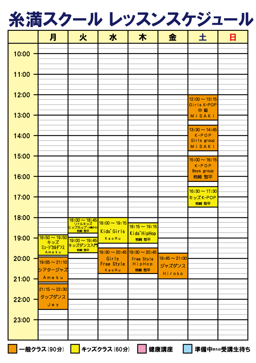 ※レッスン・時間は都合により休講、変更となる場合がございます。